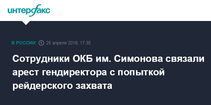 Сотрудники ОКБ им. Симонова связали арест гендиректора с попыткой рейдерского захвата