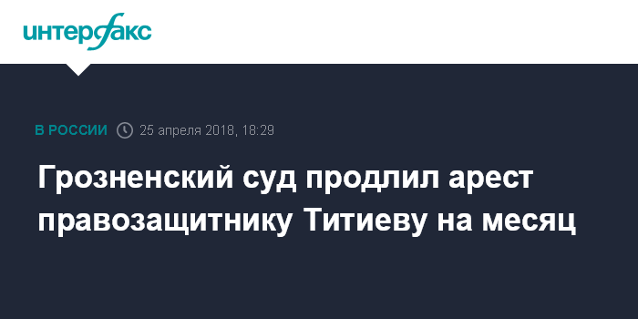 Титиев был арестован в Чечне в январе. В марте Старопромысловский районный суд Грозного продлил Титиеву срок нахождения под стражей до мая.