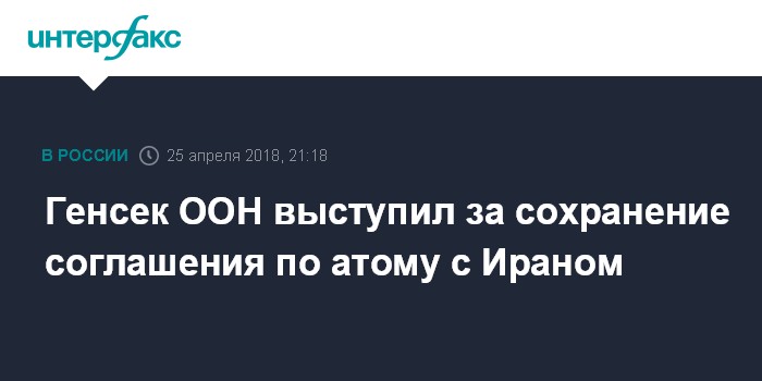 Москва. 25 апреля. INTERFAX.RU - Генеральный секретарь ООН Антониу Гутерриш считает, что страны-участники должны сохранить сделку по атому с Ираном и работать над ее расширением, сообщил в среду представитель генсека Стефан Дюжаррик.