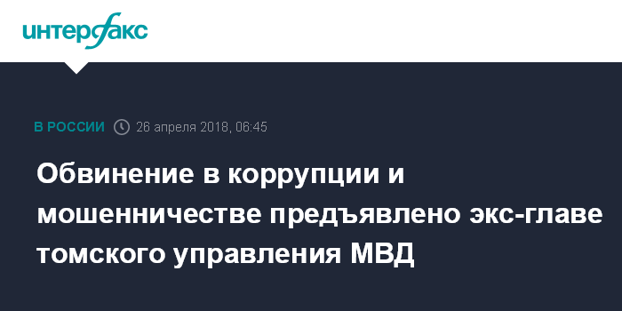 Обвинение в коррупции и мошенничестве предъявлено экс-главе томского управления МВД