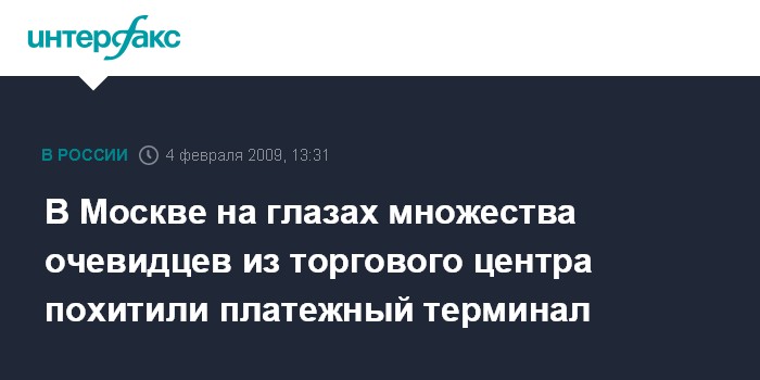 В Москве на глазах множества очевидцев из торгового центра похитили платежный терминал