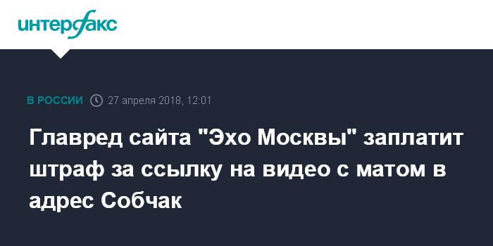 Главред сайта "Эхо Москвы" заплатит штраф за ссылку на видео с матом в адрес Собчак