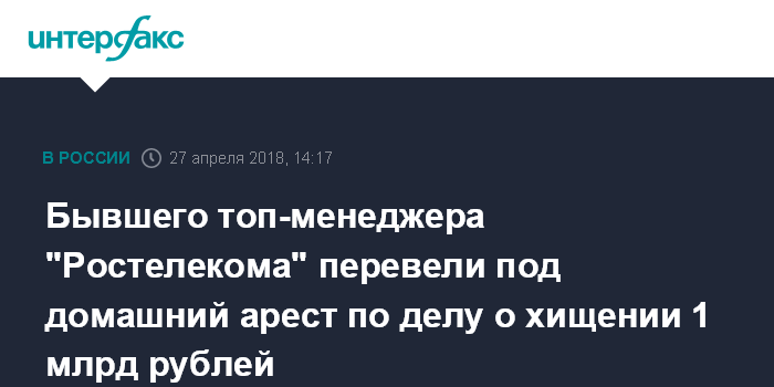 Бывшего топ-менеджера "Ростелекома" перевели под домашний арест по делу о хищении 1 млрд рублей