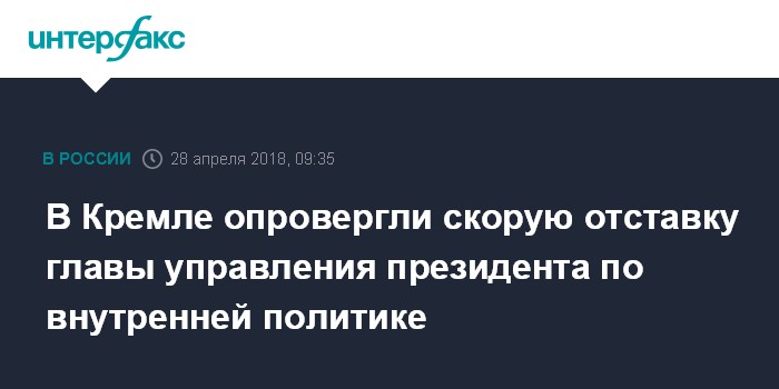 В Кремле опровергли скорую отставку главы управления президента по внутренней политике