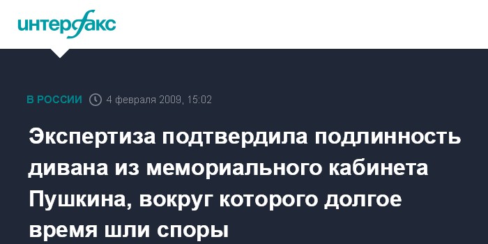 Москва. 4 февраля. INTERFAX.RU - В Мемориальном Музее - квартире А.С.Пушкина получили результаты исследования дивана писателя, на котором, как предполагается, он умер.