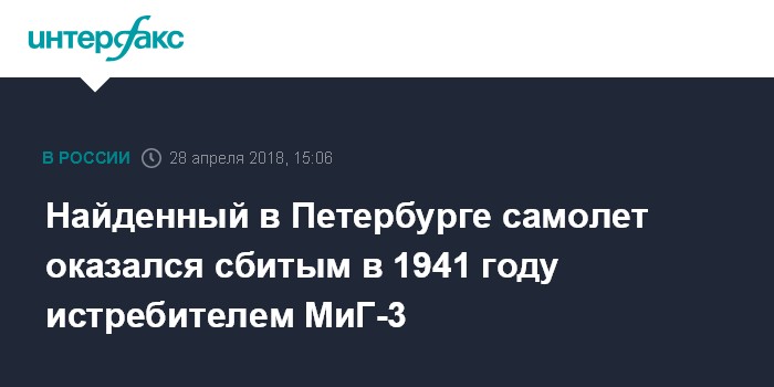 Найденный в Петербурге самолет оказался сбитым в 1941 году истребителем МиГ-3