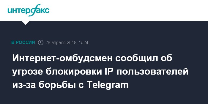 Интернет-омбудсмен сообщил об угрозе блокировки IP пользователей из-за борьбы с Telegram