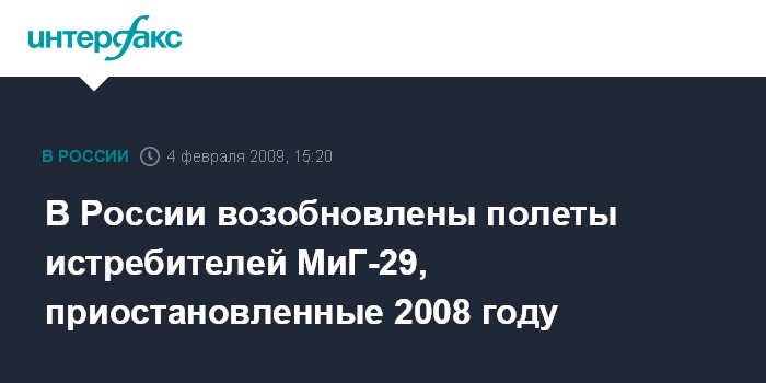 Москва. 4 февраля. INTERFAX.RU - В российских ВВС возобновлены полеты самолетов МиГ-29, приостановленные после катастрофы истребителя в декабре прошлого года в Забайкалье, сообщил "Интерфаксу-АВН" в среду начальник службы безопасности полетов авиации Вооруженных сил РФ генерал-лейтенант Сергей Байнетов.