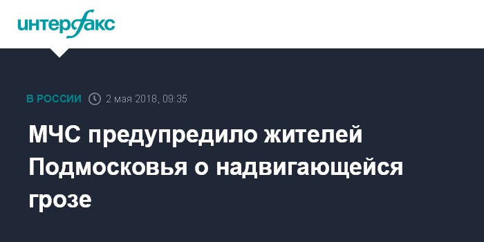 Отмечается, что "в ближайшие 1-2 часа с сохранением в течение дня и вечером 2 мая местами по Московской области ожидается сильный дождь, гроза, град, при грозе шквалистый ветер с порывами 15-20 м/с".