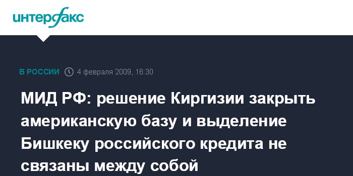 МИД РФ: решение Киргизии закрыть американскую базу и выделение Бишкеку российского кредита не связаны между собой