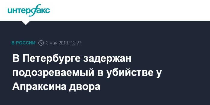 Москва. 3 мая. INTERFAX.RU - Сотрудники правоохранительных органов задержали подозреваемого в резонансном убийстве у рынка Апраксин двор в центре Санкт-Петербурга 30 апреля, сообщает пресс-служба ГУ МВД по Петербургу и Ленинградской области в четверг.