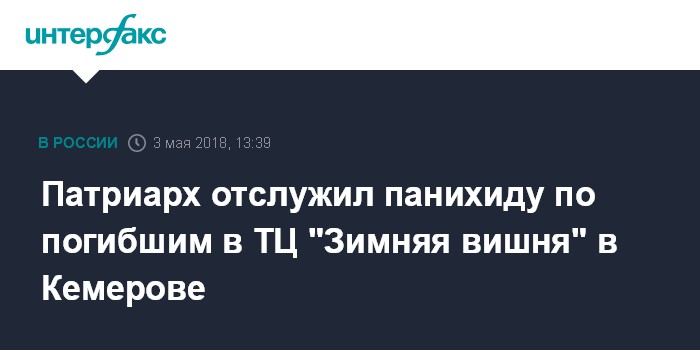Москва. 3 мая. INTERFAX.RU - Патриарх Московский и всея Руси Кирилл в четверг в кемеровском Знаменском кафедральном соборе отслужил панихиду по погибшим в результате пожара в торговом центре "Зимняя вишня".