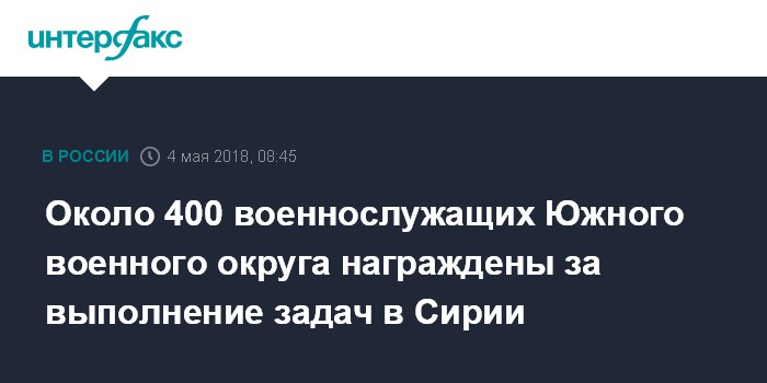 Около 400 военнослужащих ЮВО награждены государственными орденами и медалями, отметил он.