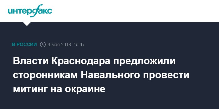 Москва. 4 мая. INTERFAX.RU - Администрация Краснодара не согласовала сторонникам оппозиционера Алексея Навального проведение мероприятия в центре города в субботу, 5 мая, предоставив площадку на окраине.