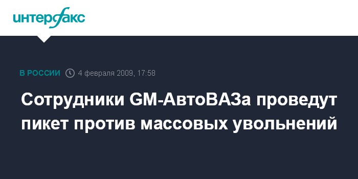 Самара. 4 февраля. INTERFAX.RU - Сотрудники ОАО "GM-АвтоВАЗ" намерены в пятницу провести пикет на центральной проходной завода, протестуя против массовых увольнений, планирующихся на предприятии.