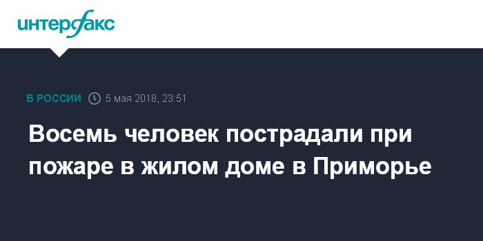 "По предварительной информации, в результате пожара в квартире жилого дома пострадали восемь человек, в том числе трое детей, они госпитализированы в Уссурийскую больницу номер 7", - сказал собеседник агентства.