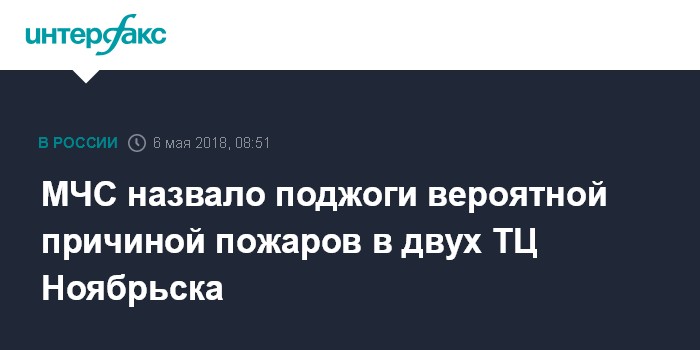 МЧС назвало поджоги вероятной причиной пожаров в двух ТЦ Ноябрьска