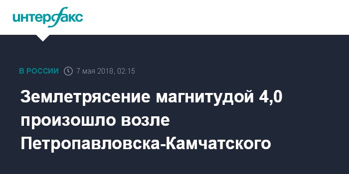 Москва. 7 мая. INTERFAX.RU - Сейсмологи зарегистрировали землетрясение магнитудой 4,0, произошедшее в Авачинском заливе у восточного побережья полуострова, сообщили "Интерфаксу" в Камчатском филиале Геофизической службы Российской академии наук (РАН).