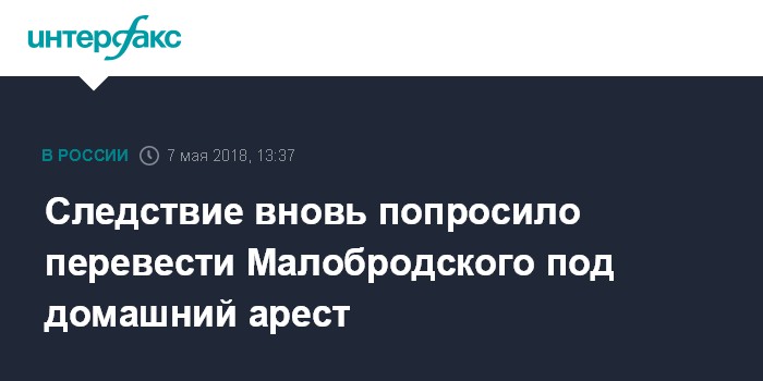 В конце апреля следствие собиралось перевести Малобродского под домашний арест, но против этого решения выступила прокуратура, и суд оставил его под стражей.