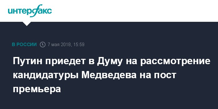 Путин приедет в Думу на рассмотрение кандидатуры Медведева на пост премьера