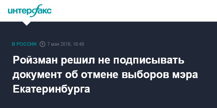 Москва. 7 мая. INTERFAX.RU - Мэр Екатеринбурга Евгений Ройзман заявил, что не намерен подписывать документ о внесении поправок в устав города, предусматривающих отмену прямых выборов главы города.