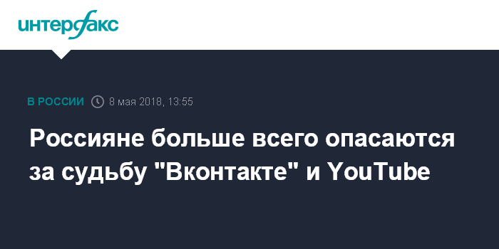 Москва. 8 мая. INTERFAX.RU - Почти каждый пятый россиянин опасается блокировки социальной сети "Вконтакте" и практически каждый восьмой респондент боится блокировки видеохостинга YouTube, следует из опроса, проведенного исследовательским порталом Superjob.ru.