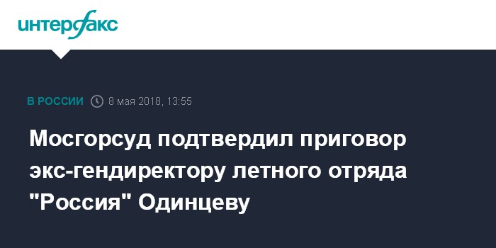 Мосгорсуд подтвердил приговор экс-гендиректору летного отряда "Россия" Одинцеву