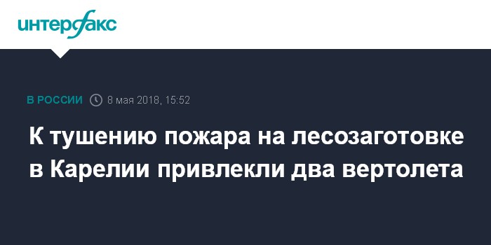Москва. 8 мая. INTERFAX.RU - Пожар на лесозаготовке в Карелии угрожает поселку Лендеры, спасатели решили задействовать в тушении авиацию.