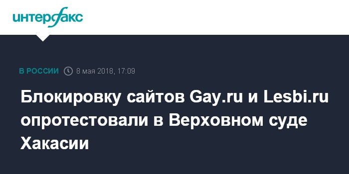 Москва. 8 мая. INTERFAX.RU - ЛГБТ-ресурс Gay.ru обжаловал решение Алтайского районного суда Хакасии о его блокировке в связи с размещением информации, запрещенной к распространению на территории России.