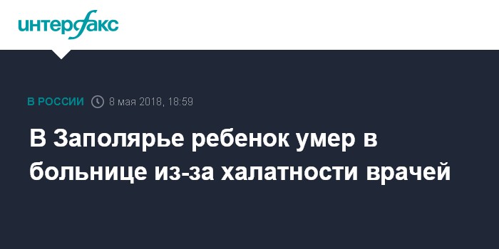 В Заполярье ребенок умер в больнице из-за халатности врачей