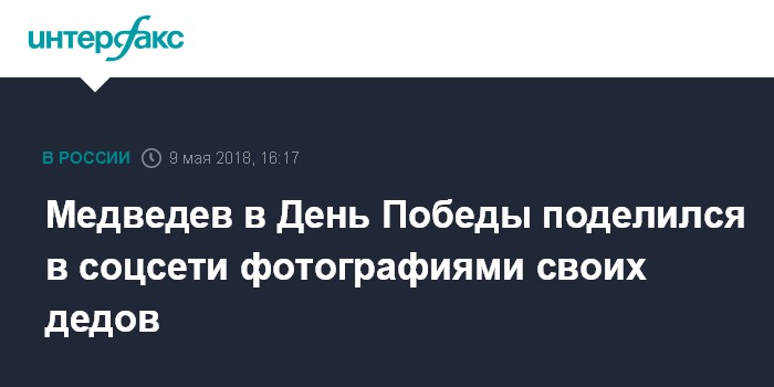 Москва. 9 мая. INTERFAX.RU - Премьер России Дмитрий Медведев опубликовал в твиттере фото своих дедушек в военной форме.