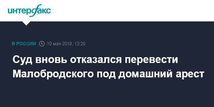 "Оснований для отмены или изменения Малобродскому меры пресечения в виде заключения под стражу на более мягкую в настоящее время суд не усматривает", - тогда огласила решения судья Евгения Николаева. По мнению суда, Малобродский по-прежнему может скрыться из-под домашнего ареста, а окончание расследования основанием для изменения меры пресечения быть не может.