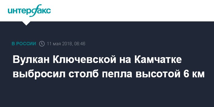 Москва. 11 мая. INTERFAX.RU - Вулкан Ключевской, активизировавшийся на Камчатке, выбросил столб пепла на высоту 6 км над уровнем моря, сообщили агентству "Интерфакс - Дальний Восток" в пятницу в Камчатском филиале Геофизической службы Российской академии наук (РАН).