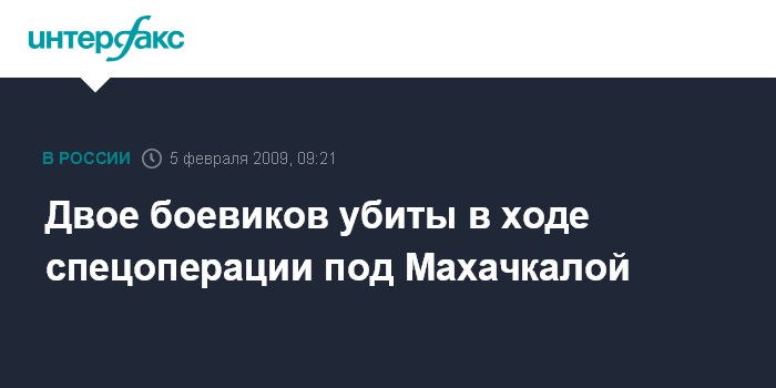Москва. 5 февраля. INTERFAX.RU - Двое боевиков уничтожены, ранения получили двое сотрудников милиции в ходе спецоперации по нейтрализации боевиков, которую провели в четверг утром силы МВД и УФСБ Дагестана в поселке Ленинкент в 10 км от Махачкалы.
