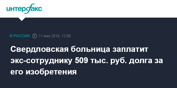 Свердловская больница заплатит экс-сотруднику 509 тыс. руб. долга за его изобретения