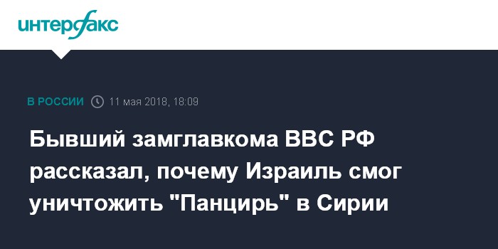 Бывший замглавкома ВВС РФ рассказал, почему Израиль смог уничтожить "Панцирь" в Сирии