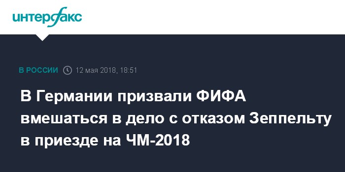 Москва. 12 мая. INTERFAX.RU - Глава комитета Бундестага по делам спорта Дагмар Фрайтаг раскритиковала решение РФ не пускать на свою территорию журналиста Хайо Зеппельта и призывает ФИФА повлиять на ситуацию, сообщает в субботу агентство Associated Press.