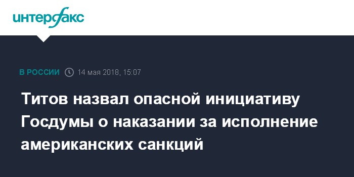 Москва. 14 мая. INTERFAX.RU - Инициатива Госдумы о введении ответственности за исполнение американских санкций опасна, заявил уполномоченный по защите прав предпринимателей при президенте РФ Борис Титов.