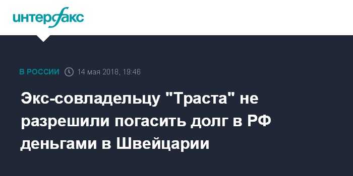 Экс-совладельцу "Траста" не разрешили погасить долг в РФ деньгами в Швейцарии