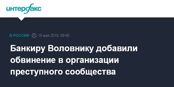 "Следствие МВД предъявило Воловнику расширенное обвинение - по ч. 3 ст. 210 УК РФ (организация преступного сообщества) и двум эпизодам ч. 4 ст. 160 УК РФ (присвоение или растрата в особо крупном размере)", - сообщил собеседник агентства.