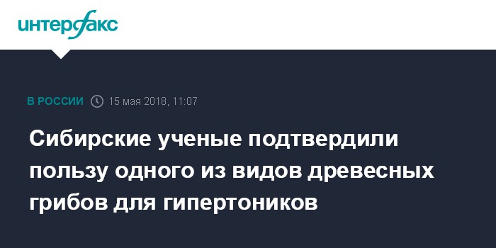 Москва. 15 мая. INTERFAX.RU - Специалисты Федерального исследовательского центра "Институт цитологии и генетики" (ИЦиГ) подтвердили, что древесный гриб "трутовик лакированный", снижает артериальное давление и улучшает кровообращение в сосудах мозга.