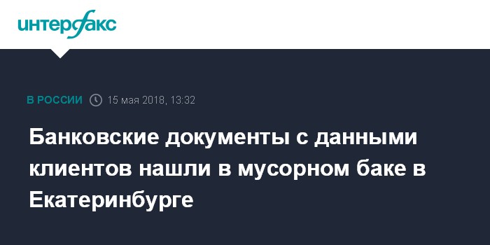 Москва. 15 мая. INTERFAX.RU - СМИ сообщили о выброшенных банковских документах с персональными данными в Екатеринбурге, проводится проверка, сообщили агентству "Интерфакс" в пресс-службе прокуратуры по региону.