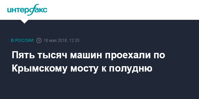 Москва. 16 мая. INTERFAX.RU - Более 5 тысяч транспортных средств воспользовались мостом через Керченский пролив к 12:00 мск - за 6,5 часа после официального открытия движения легковых автомобилей и автобусов по сооружению, сообщила пресс-служба заказчика проекта ФКУ Упрдор "Тамань".