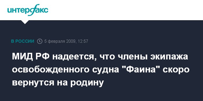 МИД РФ надеется, что члены экипажа освобожденного судна "Фаина" скоро вернутся на родину