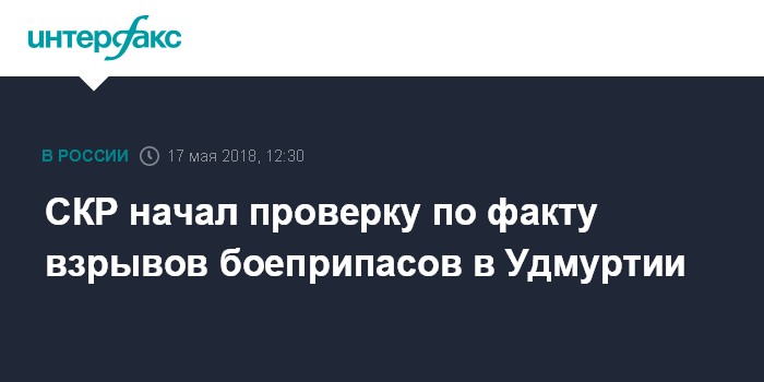 Москва. 17 мая. INTERFAX.RU - Военный следственный отдел СКР по Ижевскому гарнизону проводит доследственную проверку по факту возгорания и детонации боеприпасов на территории бывшей войсковой части в Удмуртии.