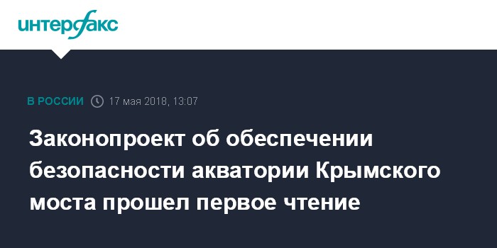 Законопроект об обеспечении безопасности акватории Крымского моста прошел первое чтение