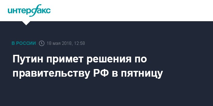Путин примет решения по правительству РФ в пятницу