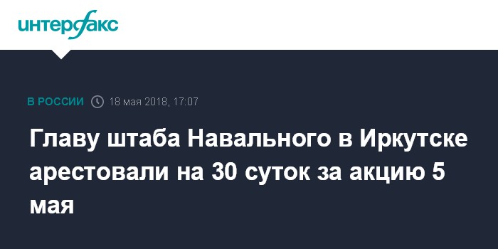 Главу штаба Навального в Иркутске арестовали на 30 суток за акцию 5 мая