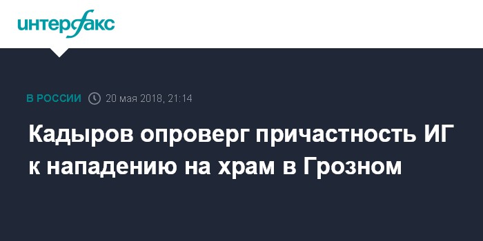 Москва. 20 мая. INTERFAX.RU - Глава Чечни Рамзан Кадыров заявил, что эмиссаров ИГ (запрещена в РФ - ИФ) нет на территории республики, а появившаяся информация о причастности "Исламского государства" к нападению на храм в Грозном призвана отвести подозрение от истинных организаторов преступления.