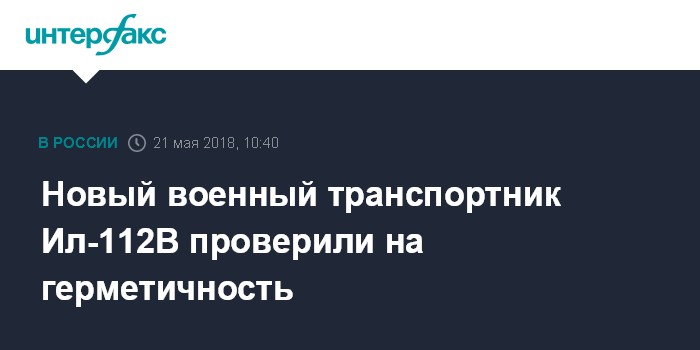 Москва. 21 мая. INTERFAX.RU - Легкий военный транспортный самолет Ил-112В успешно прошел проверку на герметичность и влагозащищенность фюзеляжа. Об этом сообщили "Интерфаксу" в пресс-службе дивизиона транспортной авиации "Объединенной авиастроительной корпорации".